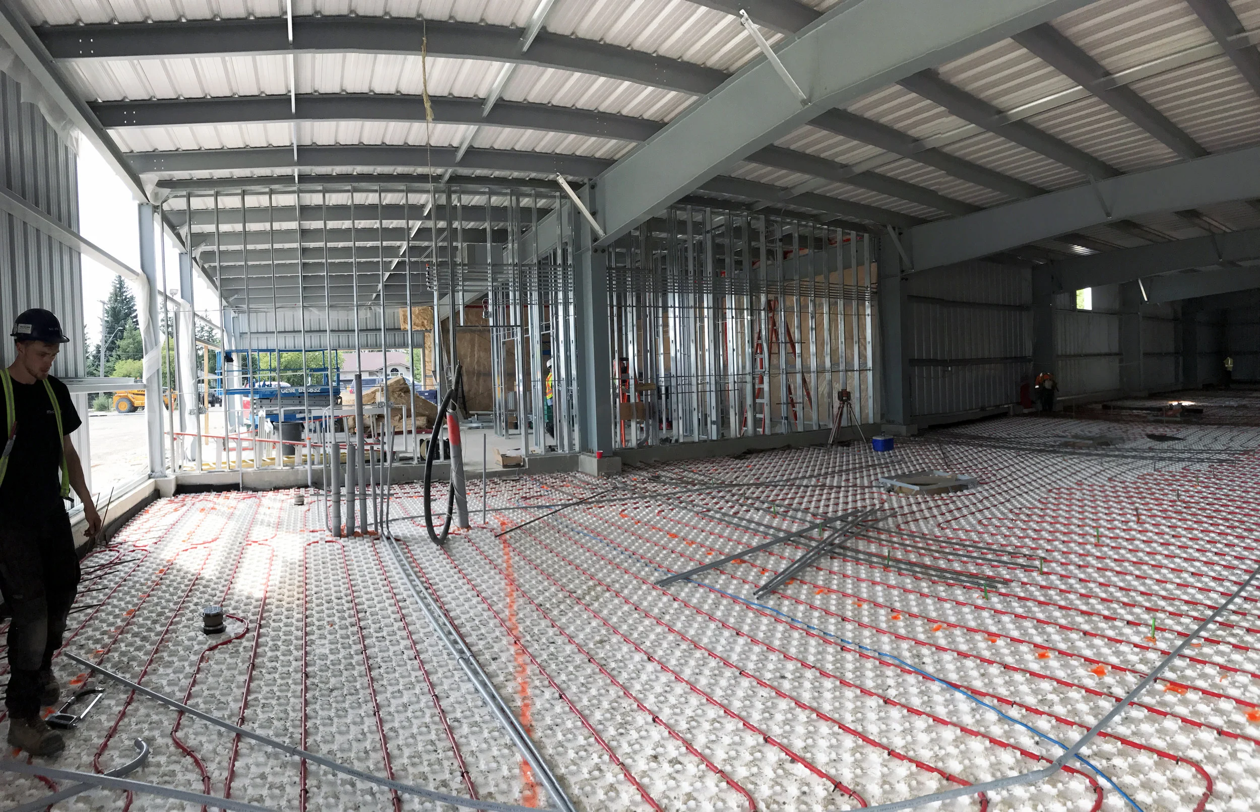 The new construction of a Blondie's Carwash on De Vries feature a pre-engineered steel structure with gray metal cladding, heated floors and large storefront windows at the retail area.